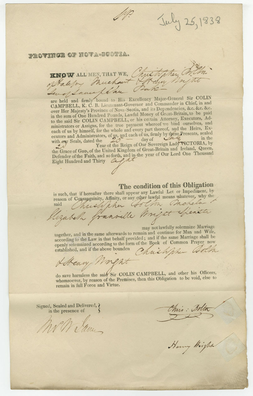 Note: signed by Henry Wright, Halifax, baker