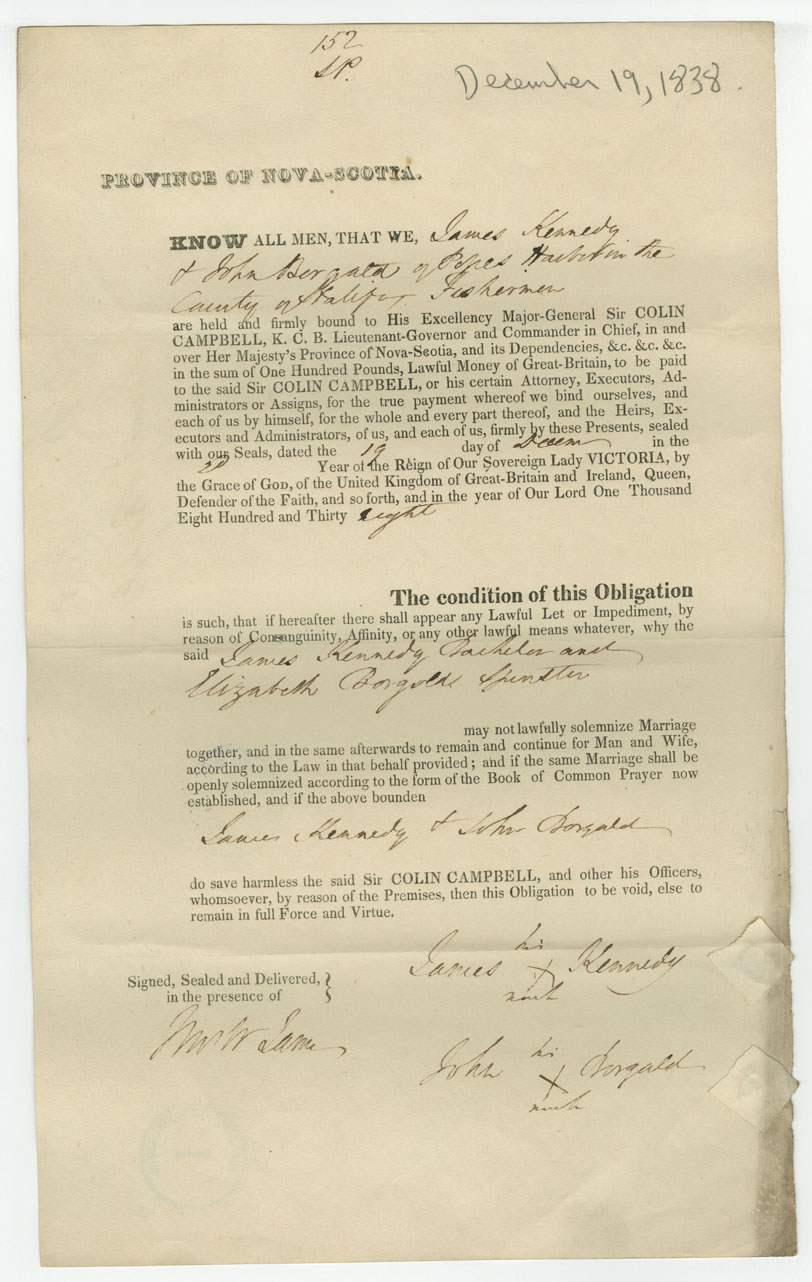 Note: signed by John Borgald, Pope's Harbour
