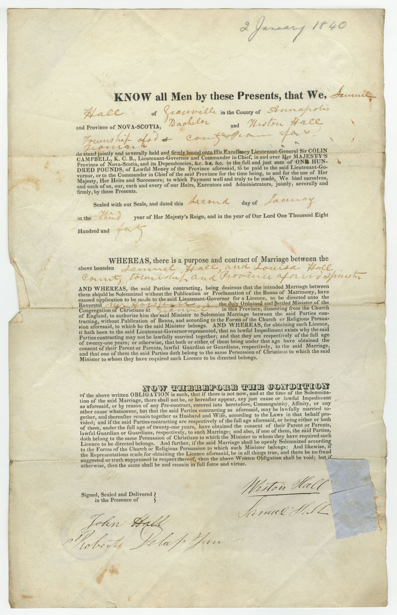 Note: signed by Weston Hall, Granville, yeoman