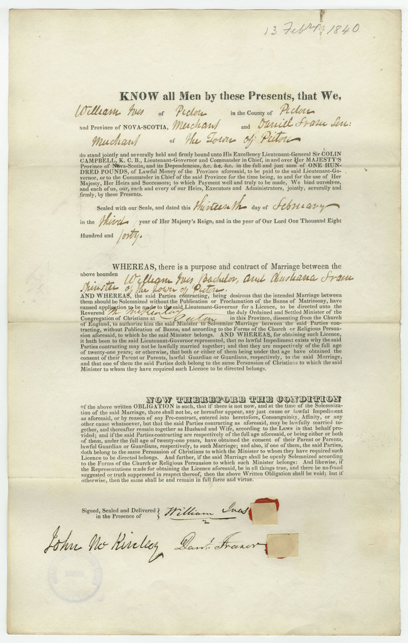 Note: signed by Daniel Fraser,, Pictou, merchant