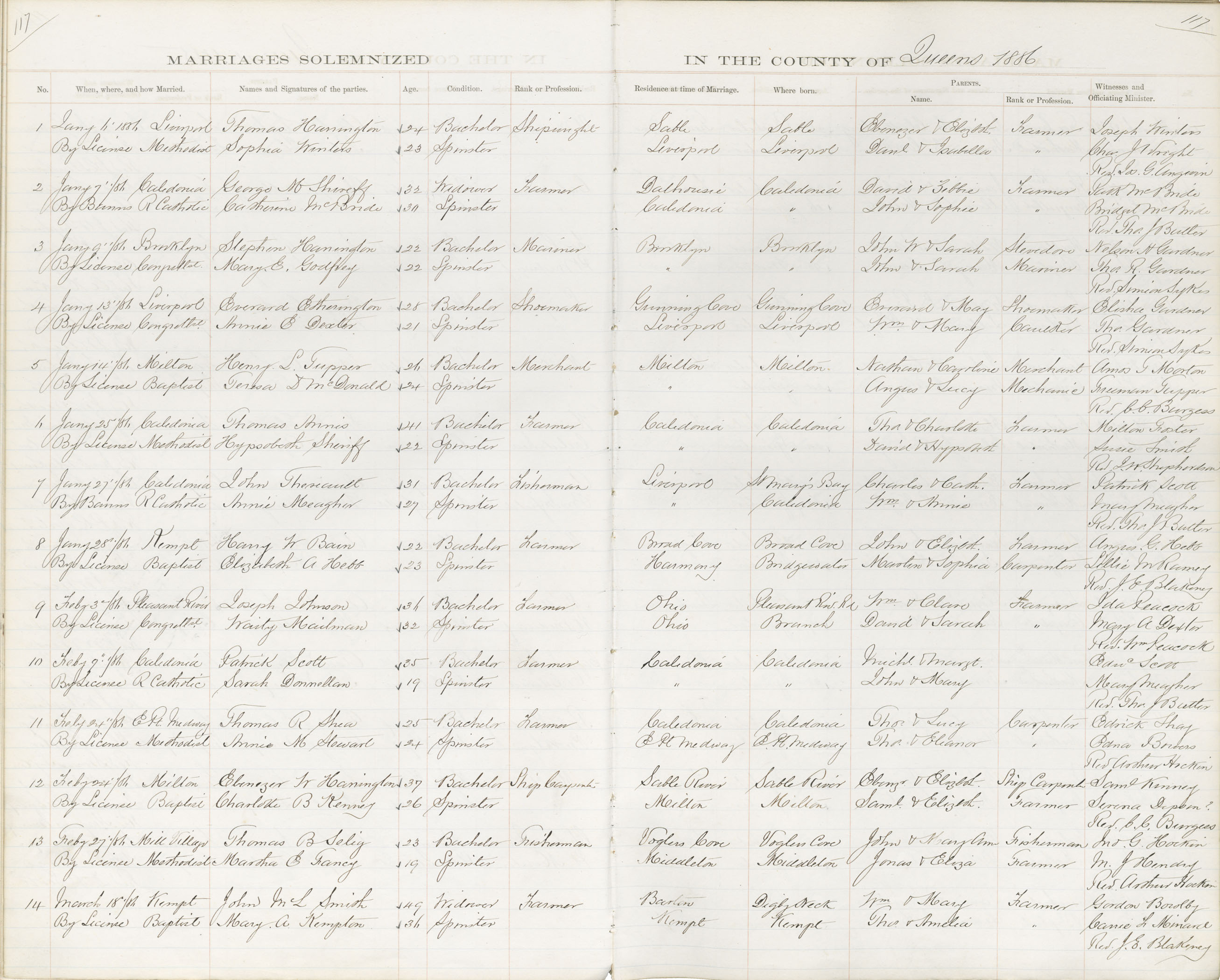 Registration: Year: 1886 book: 1834 page: 117 number: 14