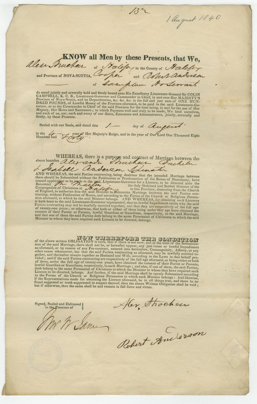 Note: signed by Robert Anderson, Halifax, house servant