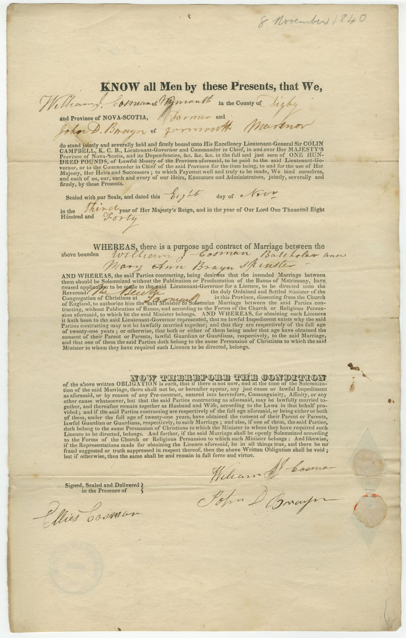 Note: signed by John D. Brayn, Yarmouth, mariner