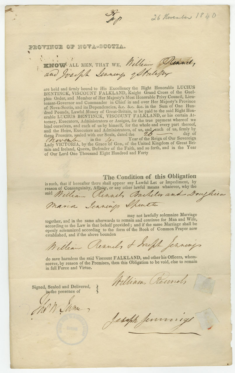 Note: signed by Joseph Jennings, Halifax
