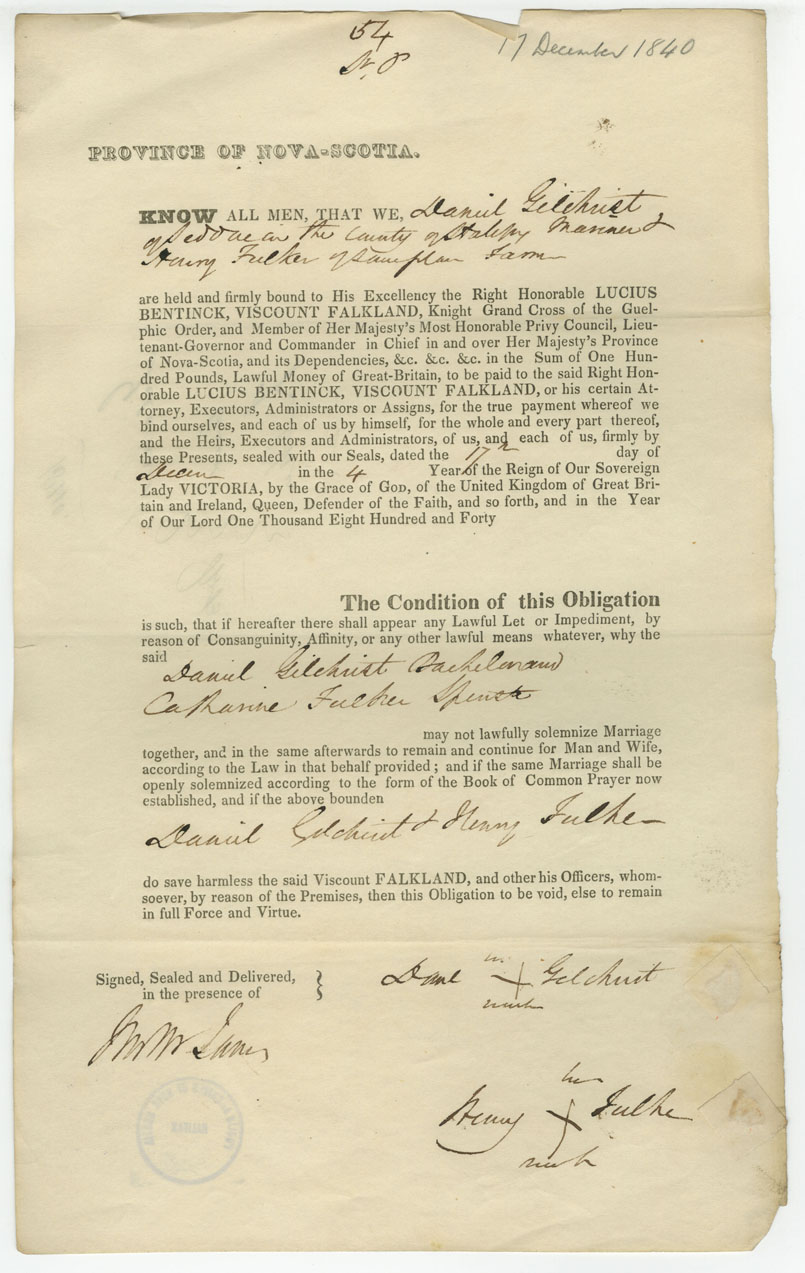 Note: signed by Henry Fulker, Jeddore, farmer
