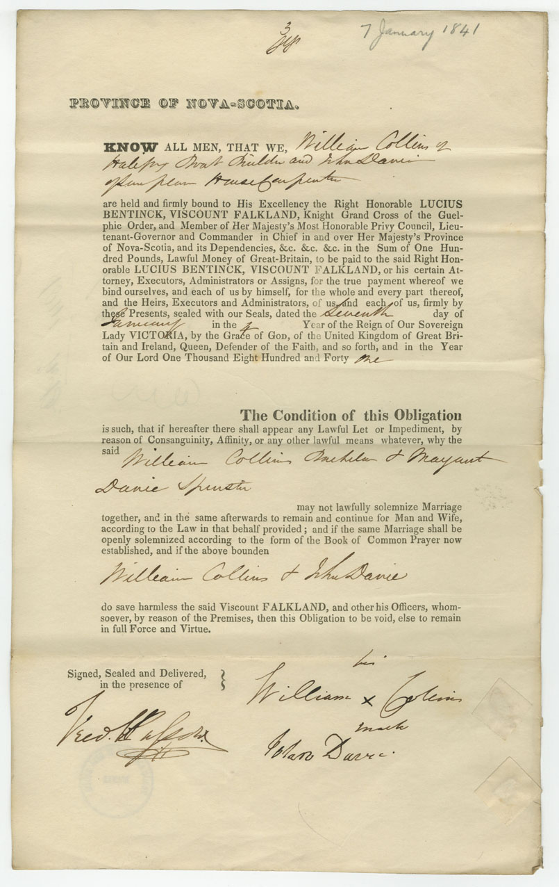 Note: signed by John Davie, Halifax, house carpenter