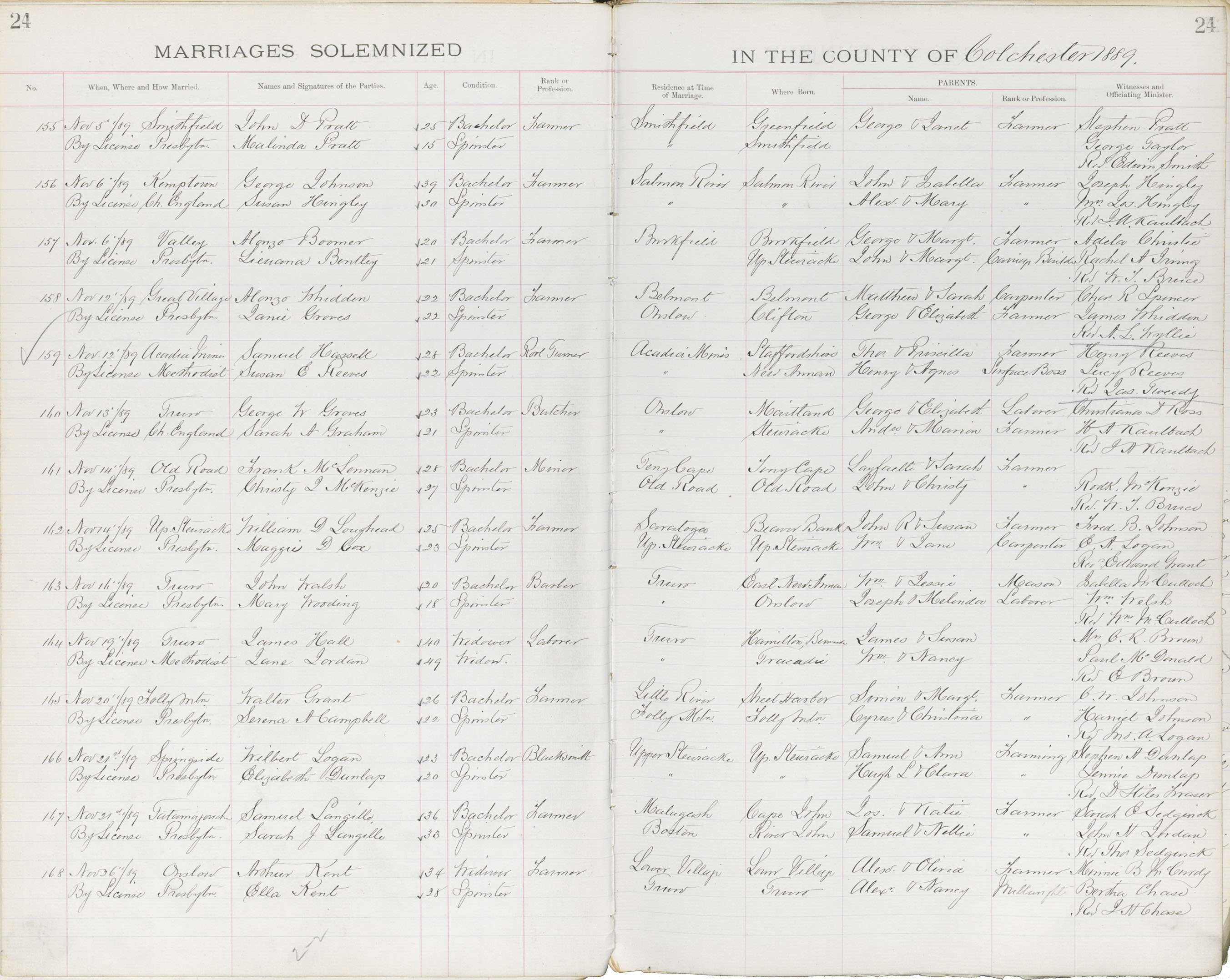 Registration: Year: 1889 book: 1807 page: 24 number: 168