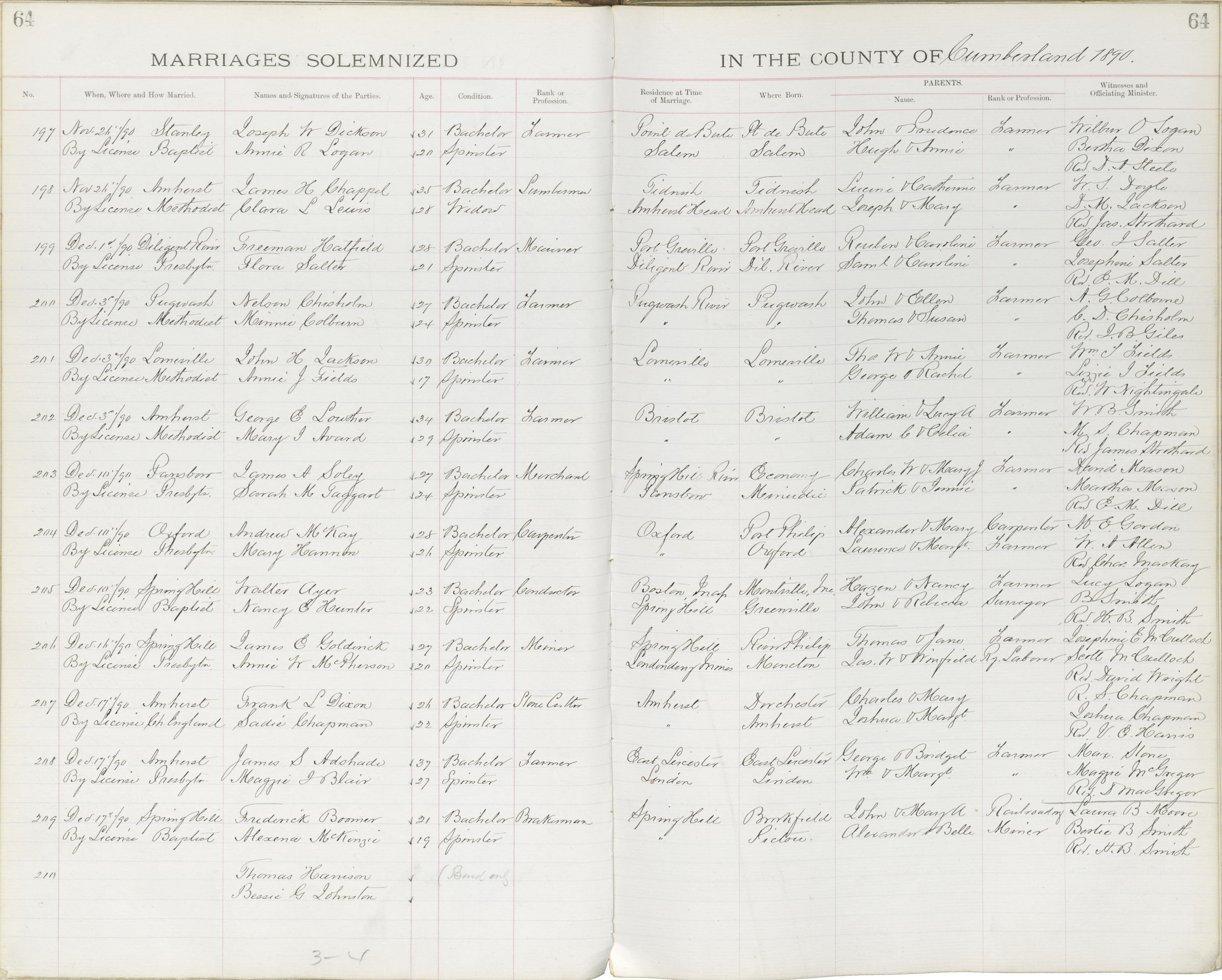 Registration: Year: 1890 book: 1810 page: 64 number: 210