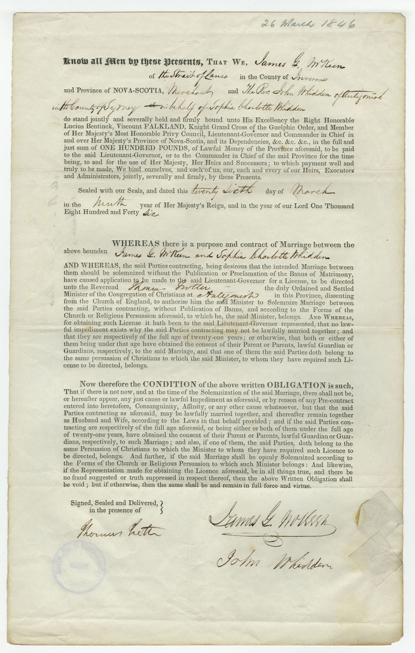 Note: signed by Rev. John Whidden, Antigonish