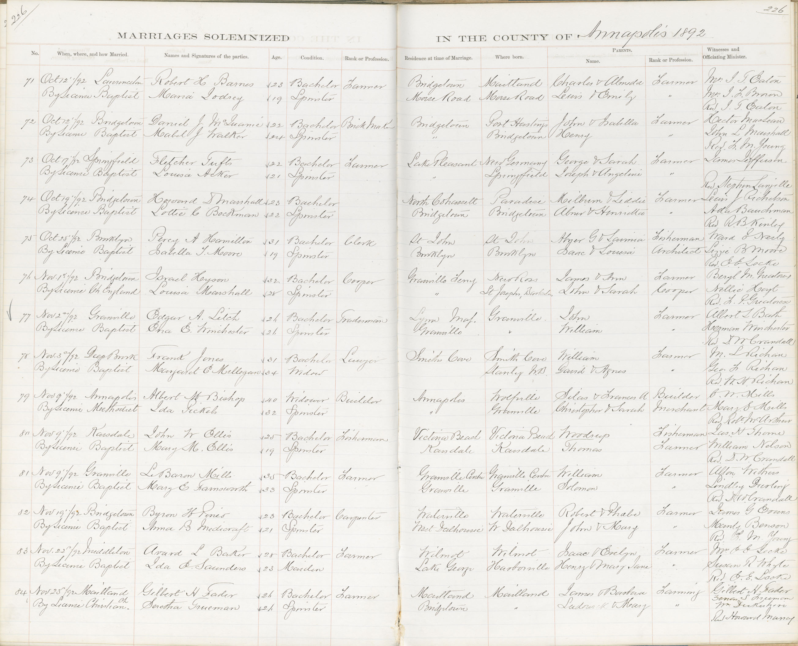 Registration: Year: 1892 book: 1801 page: 226 number: 84