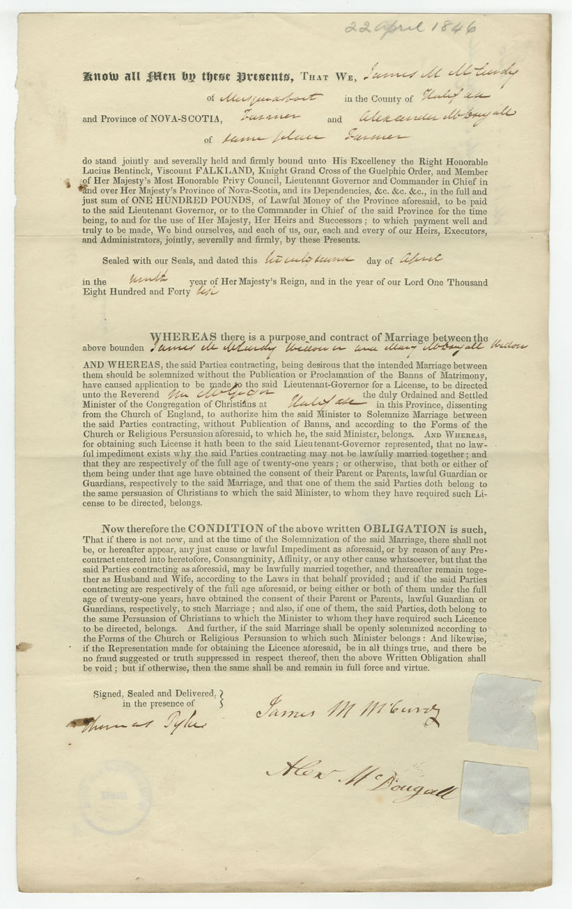 Note: signed by Alexander McDougall, Musquodoboit, farmer