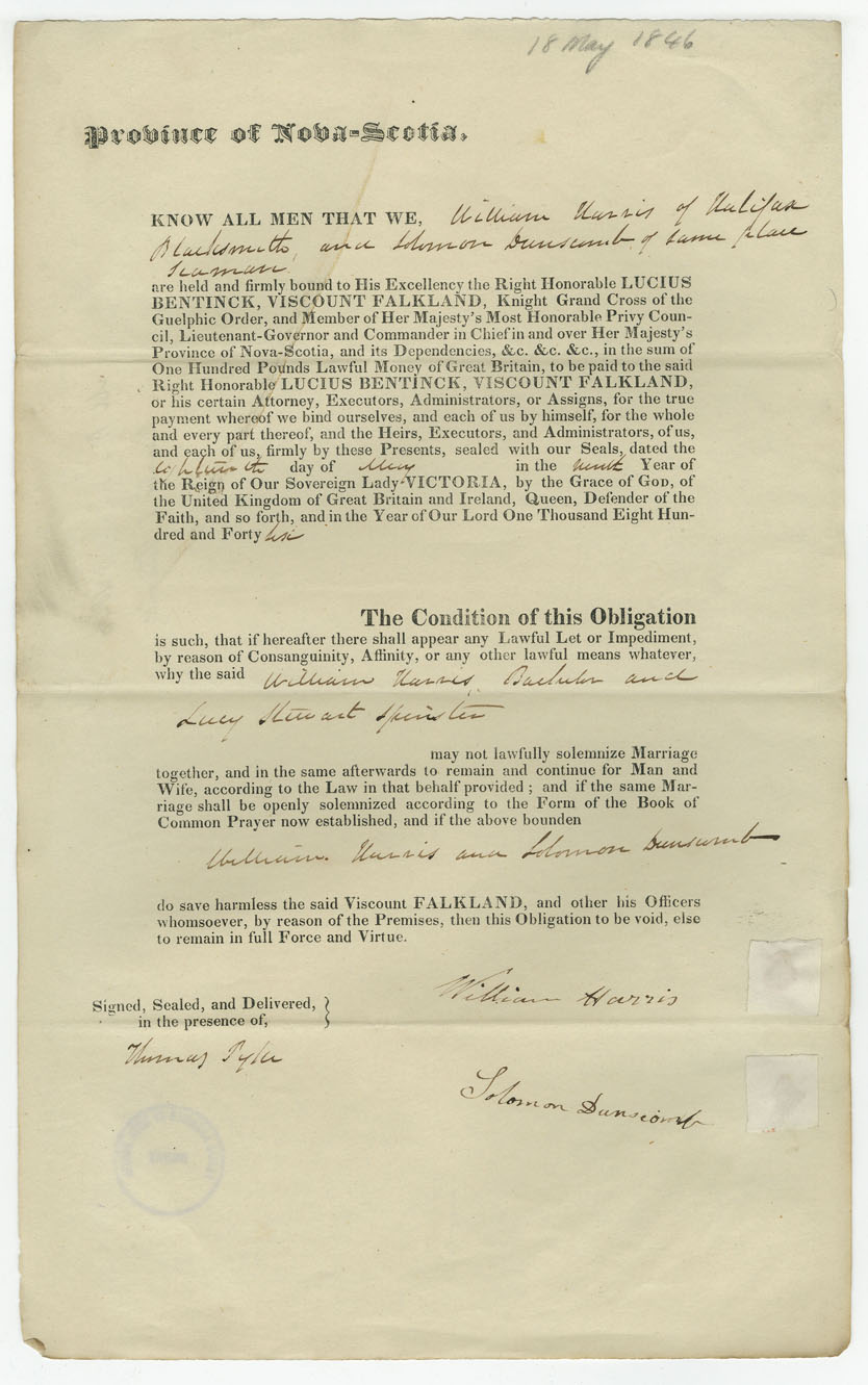 Note: signed by Solomon Dunscomb, Halifax, seaman, also signed b