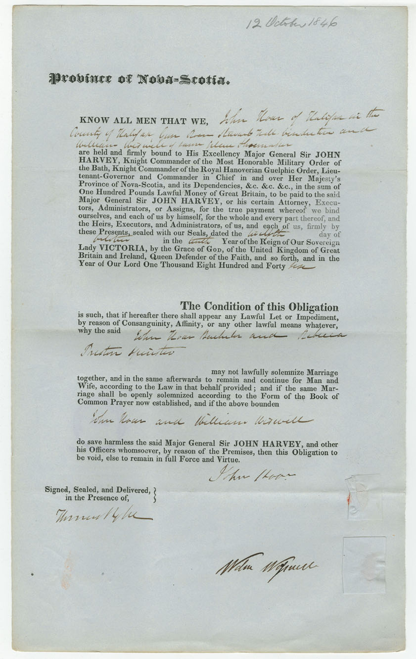 Note: signed by William Wisewell, Halifax, shoemaker