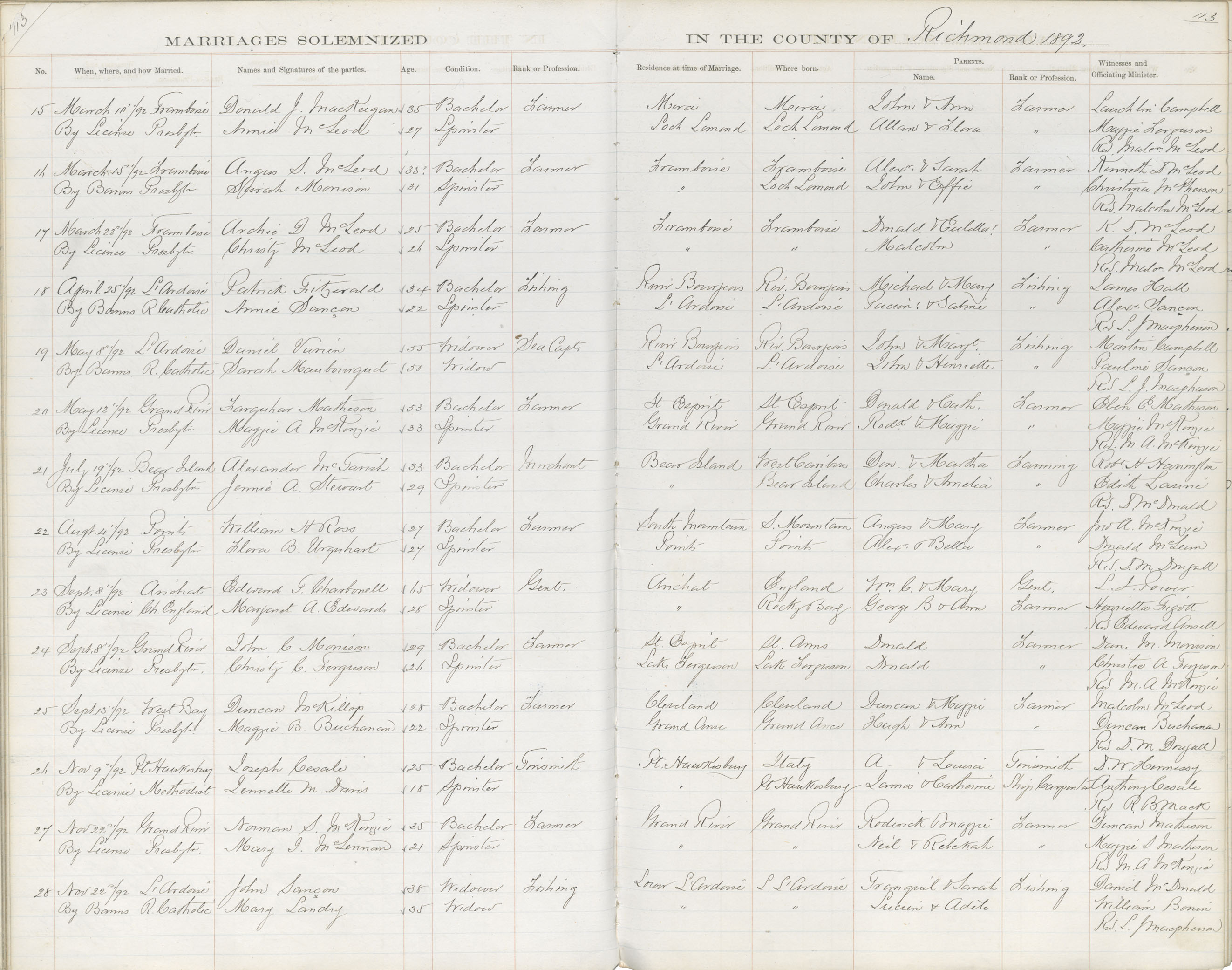 Registration: Year: 1892 book: 1835 page: 113 number: 15