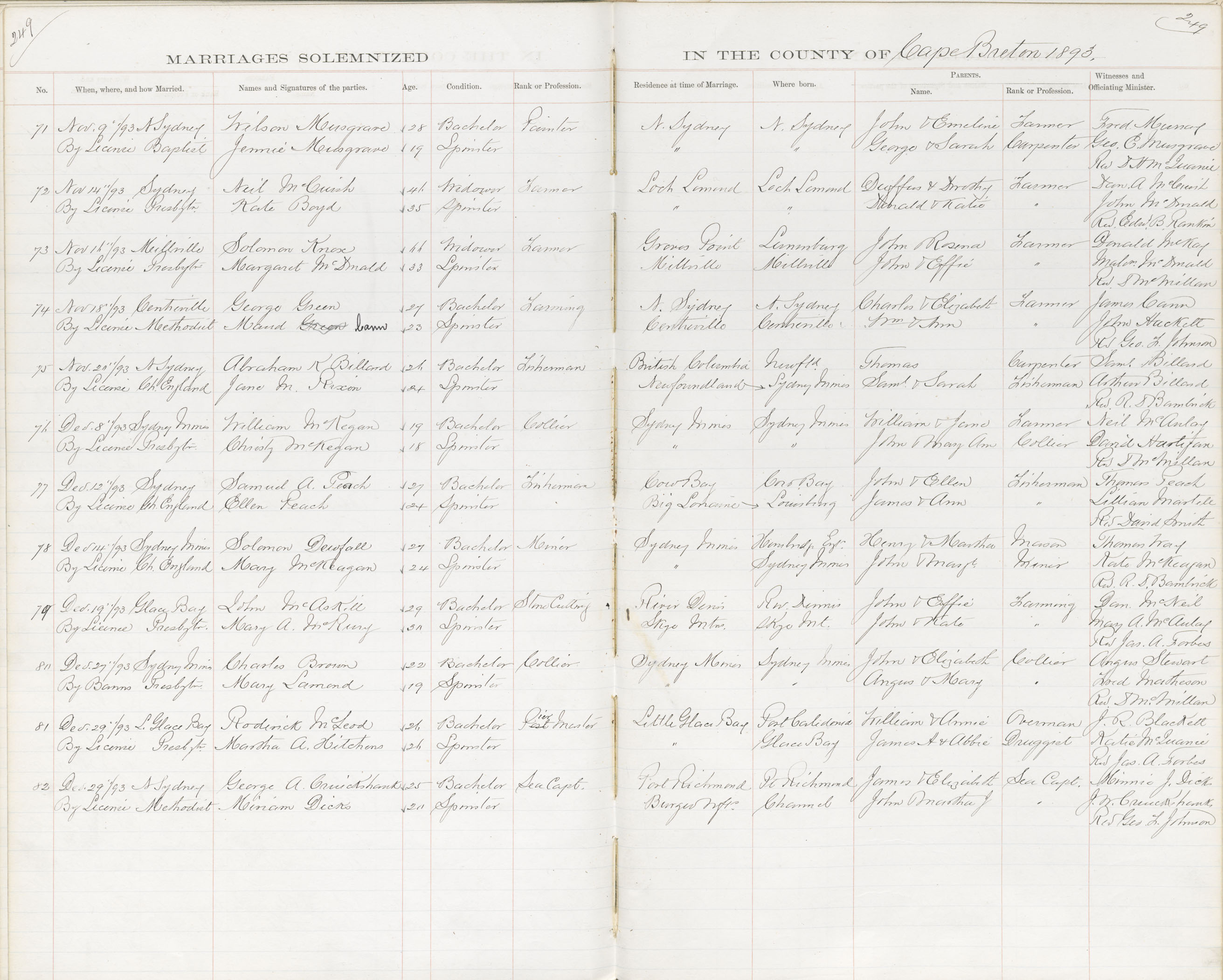 Registration: Year: 1893 book: 1804 page: 249 number: 71