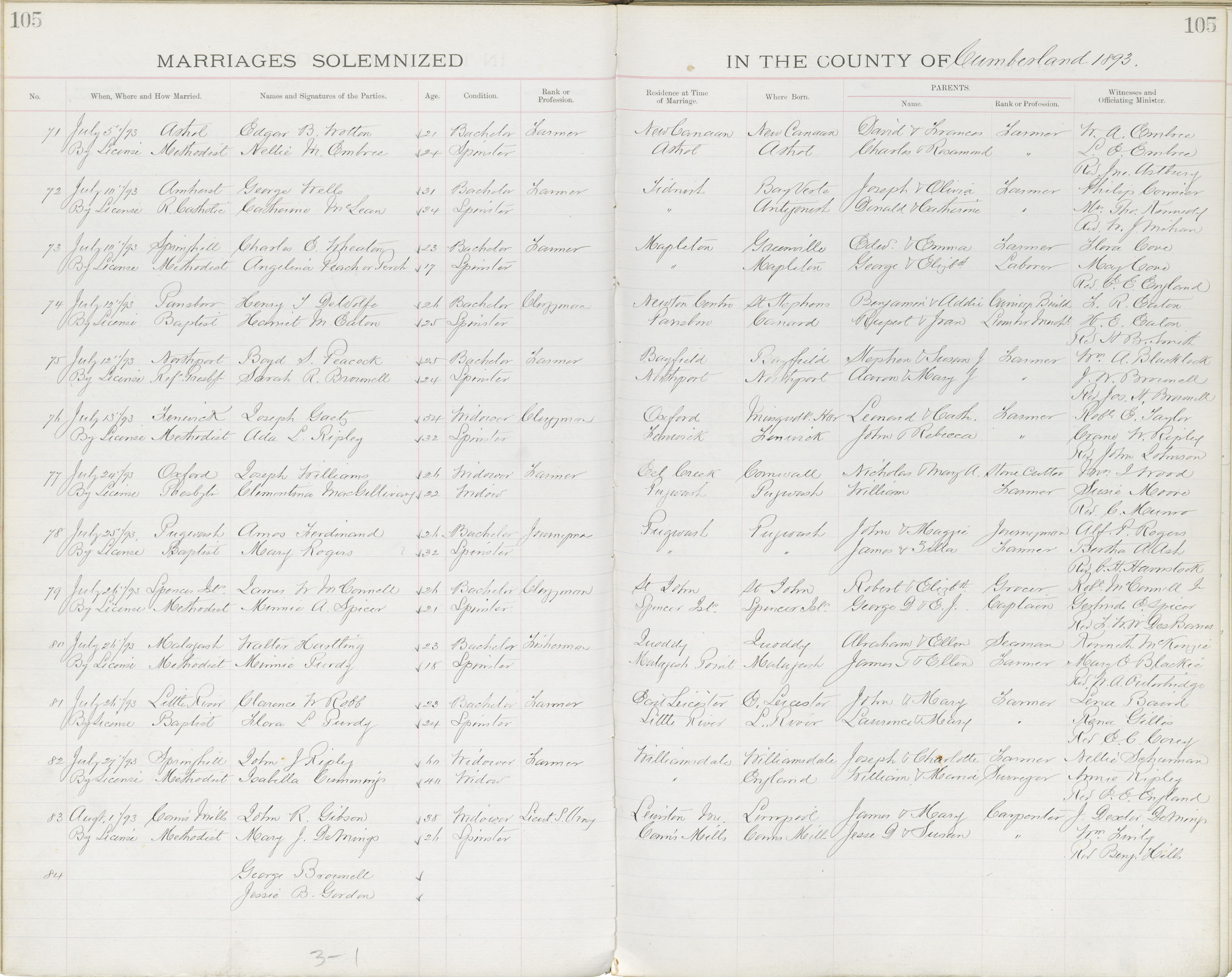 Registration: Year: 1893 book: 1810 page: 105 number: 84
