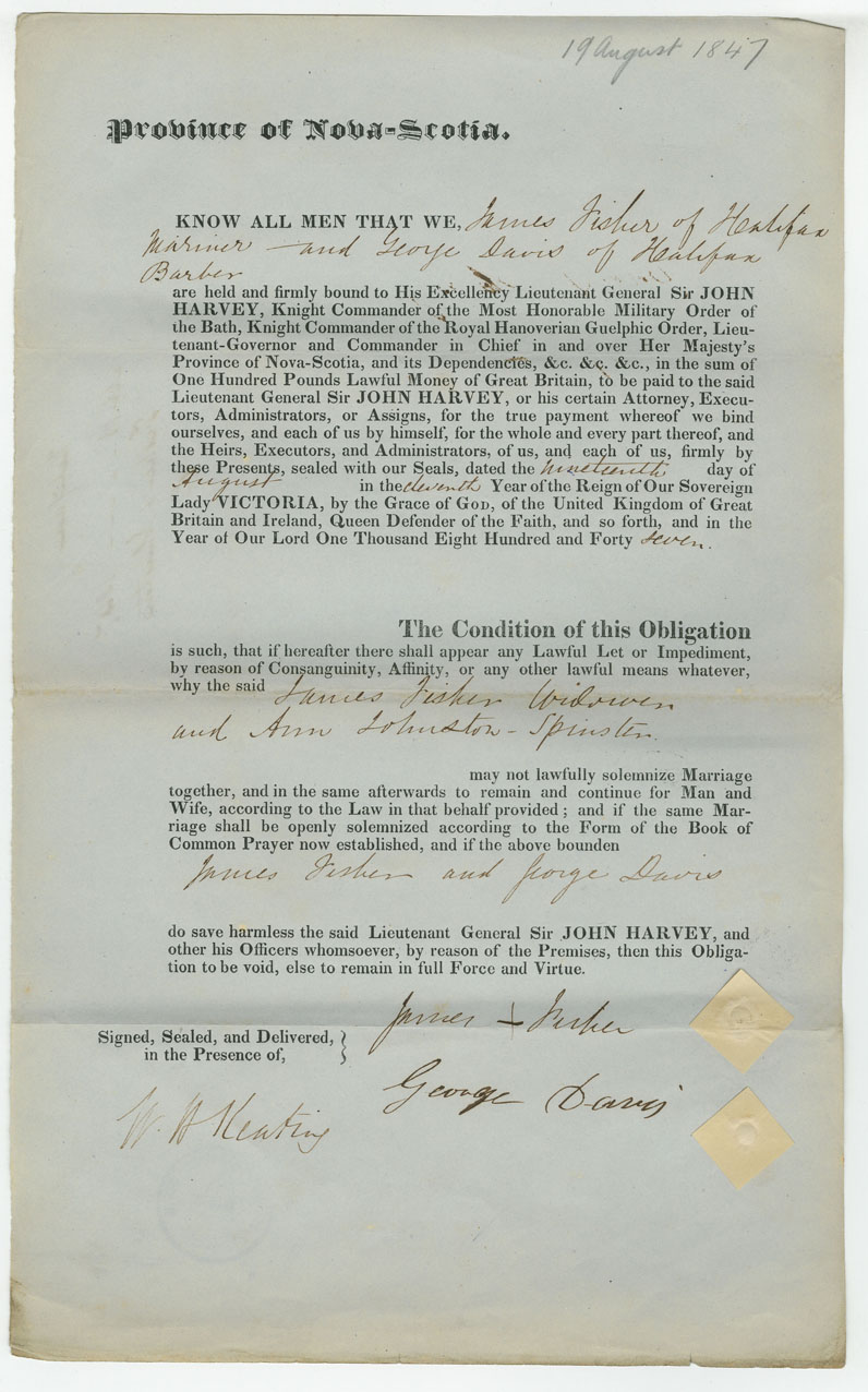 Note: signed by George Davis, Halifax, barber