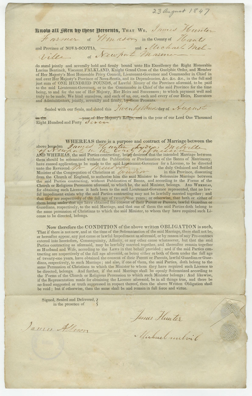 Note: signed by Michael Melville, Newport, mariner