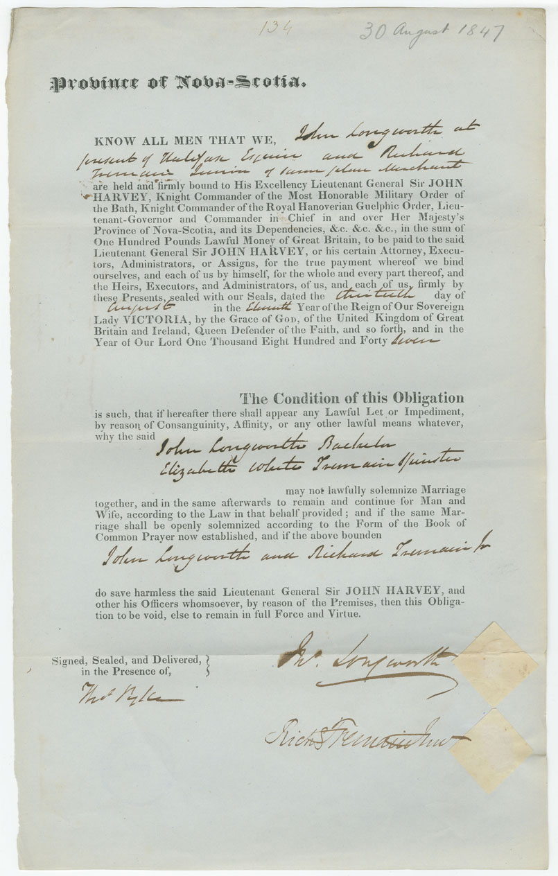 Note: signed by Richard Tremaine,, Halifax, merchant