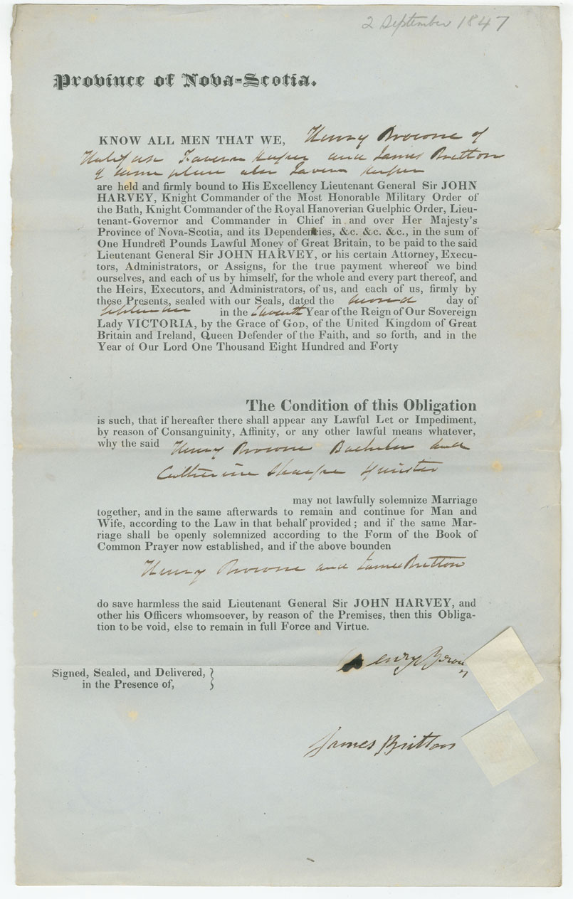 Note: signed by James Britton, Halifax, tavern keeper