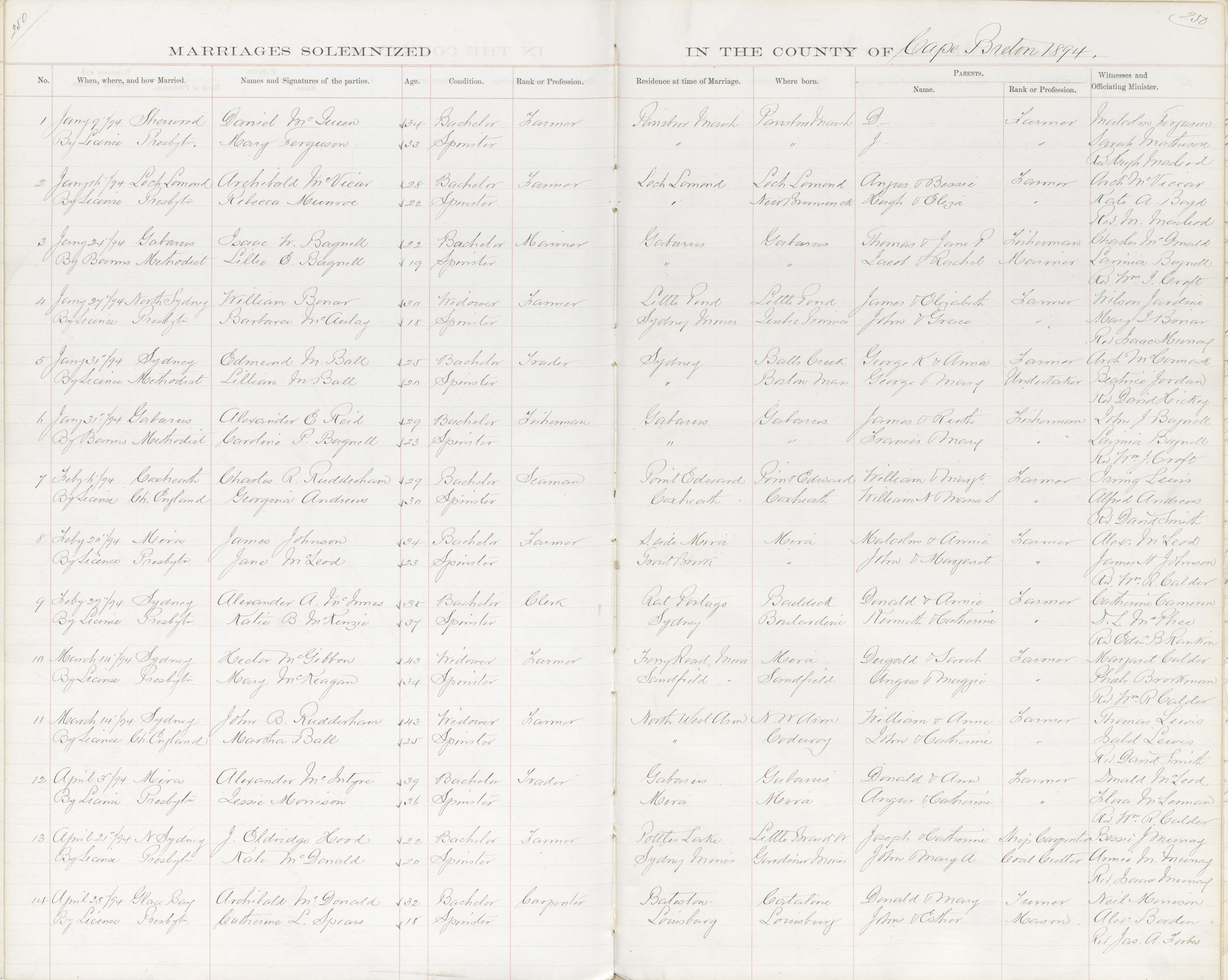 Registration: Year: 1894 book: 1804 page: 250 number: 14