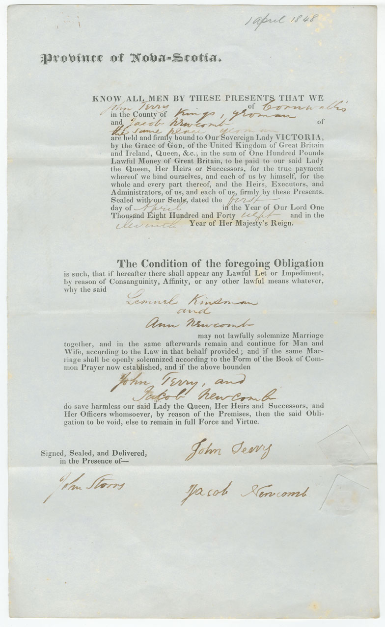 Note: signed by John Terry and Jacob Newcomb, Cornwallis yeoman