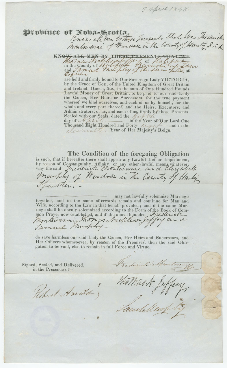 Note: signed by Thomas Nickleson Jeffrey, Halifax