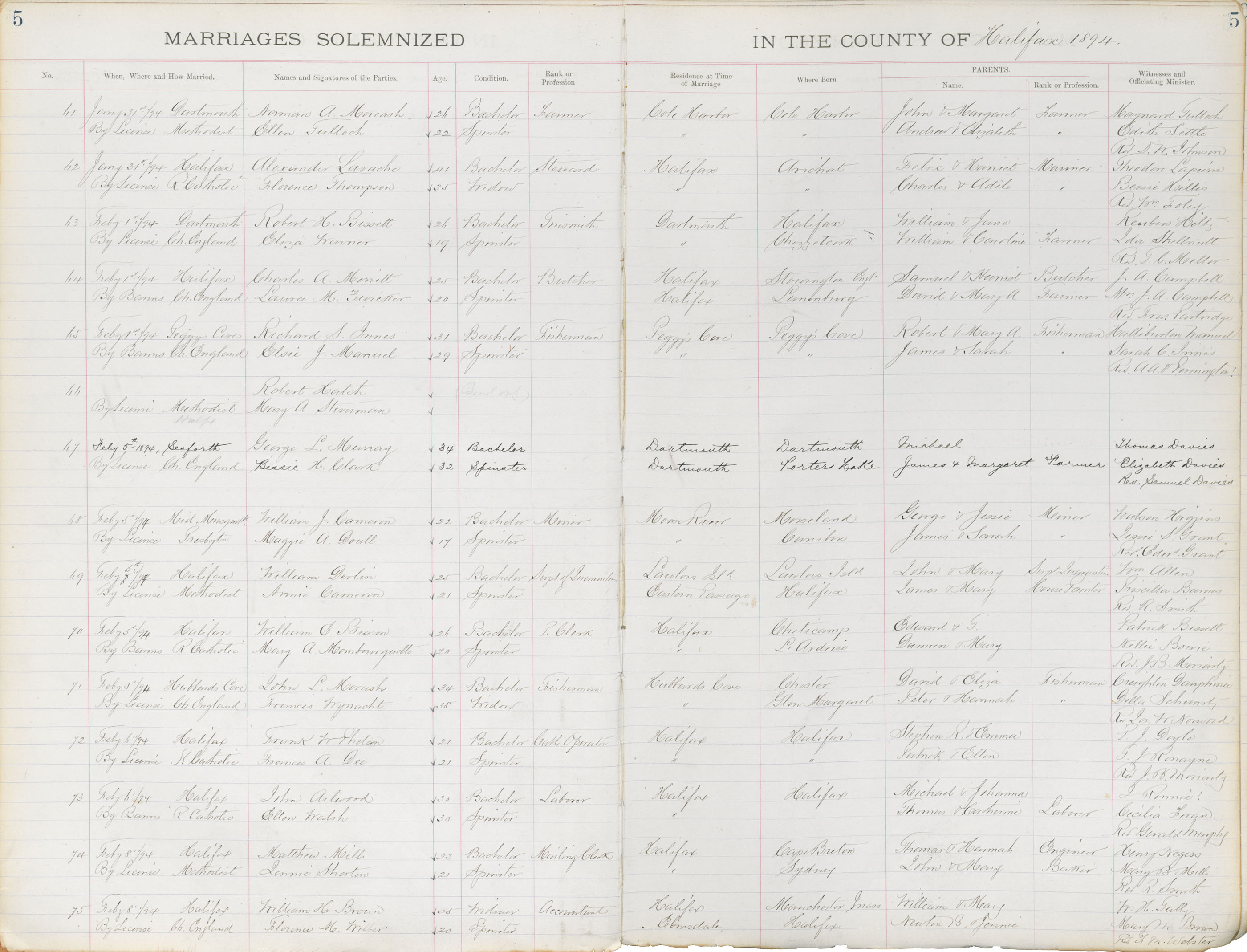 Registration: Year: 1894 book: 1819 page: 5 number: 61