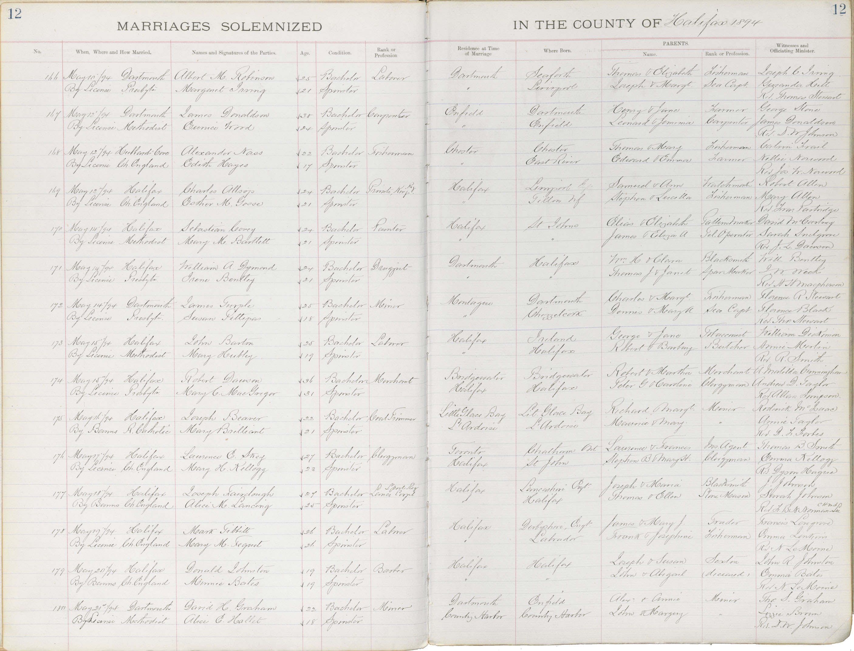 Registration: Year: 1894 book: 1819 page: 12 number: 166