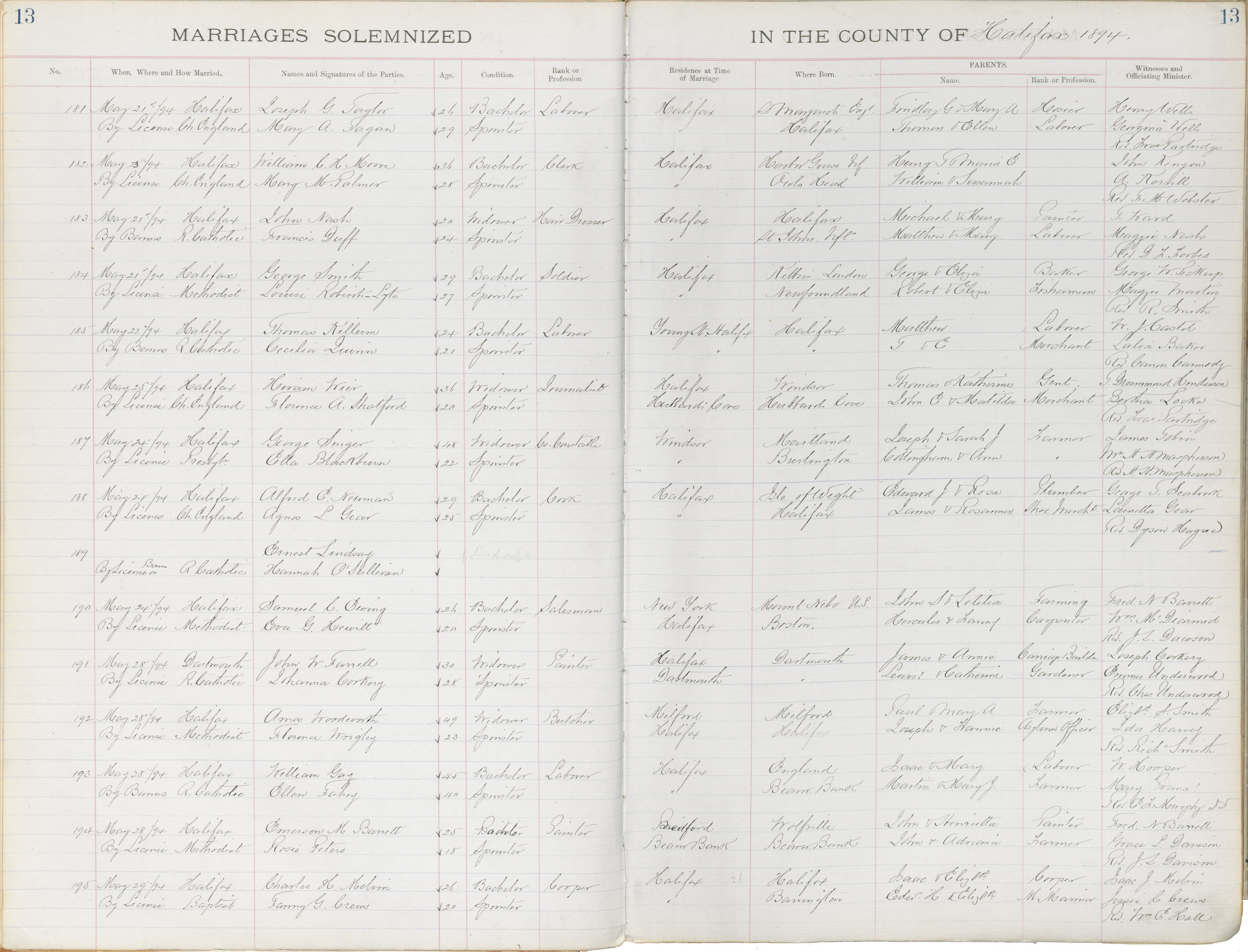 Registration: Year: 1894 book: 1819 page: 13 number: 181