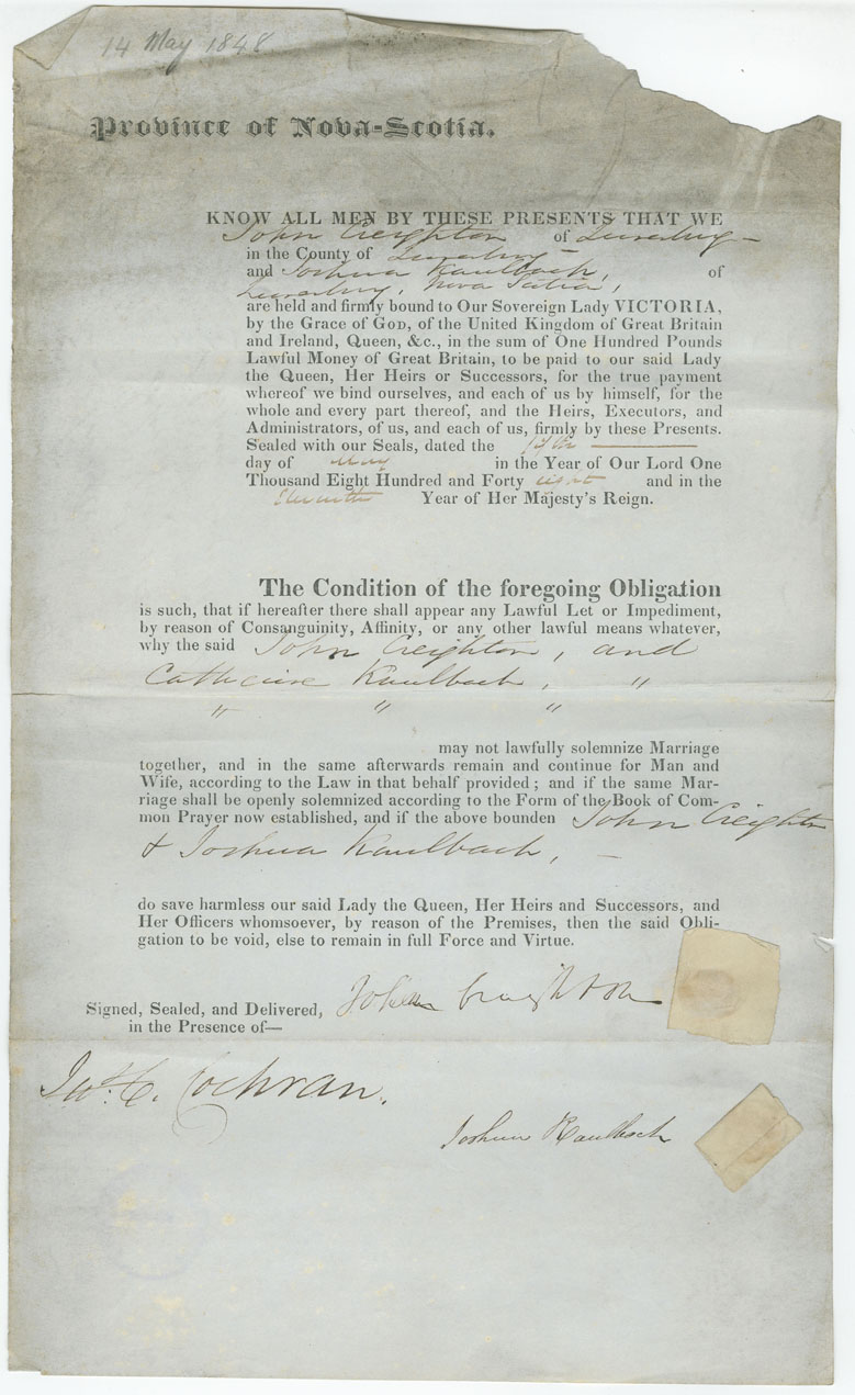 Note: signed by Joshua Kaulbach, Lunenburg
