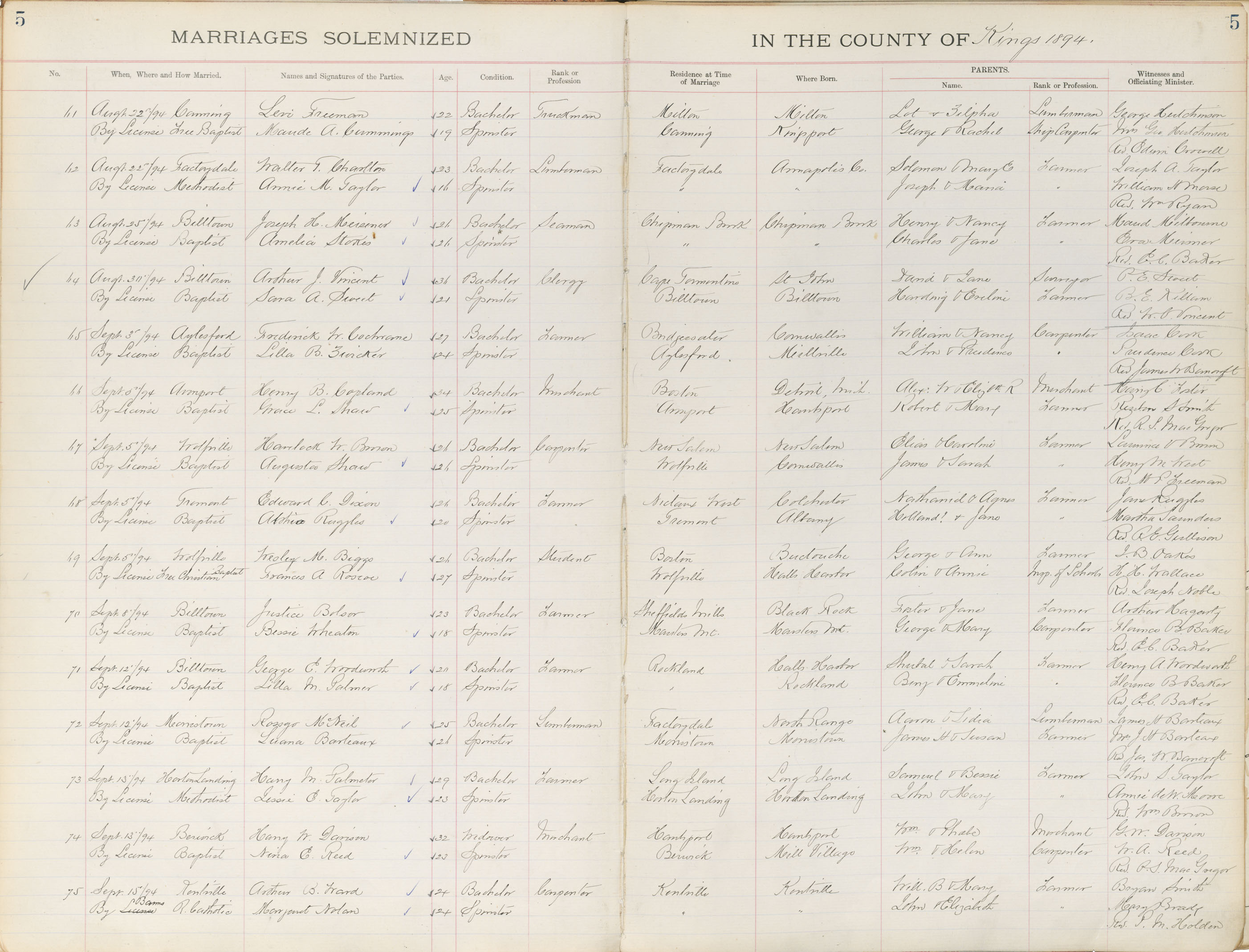 Registration: Year: 1894 book: 1827 page: 5 number: 61