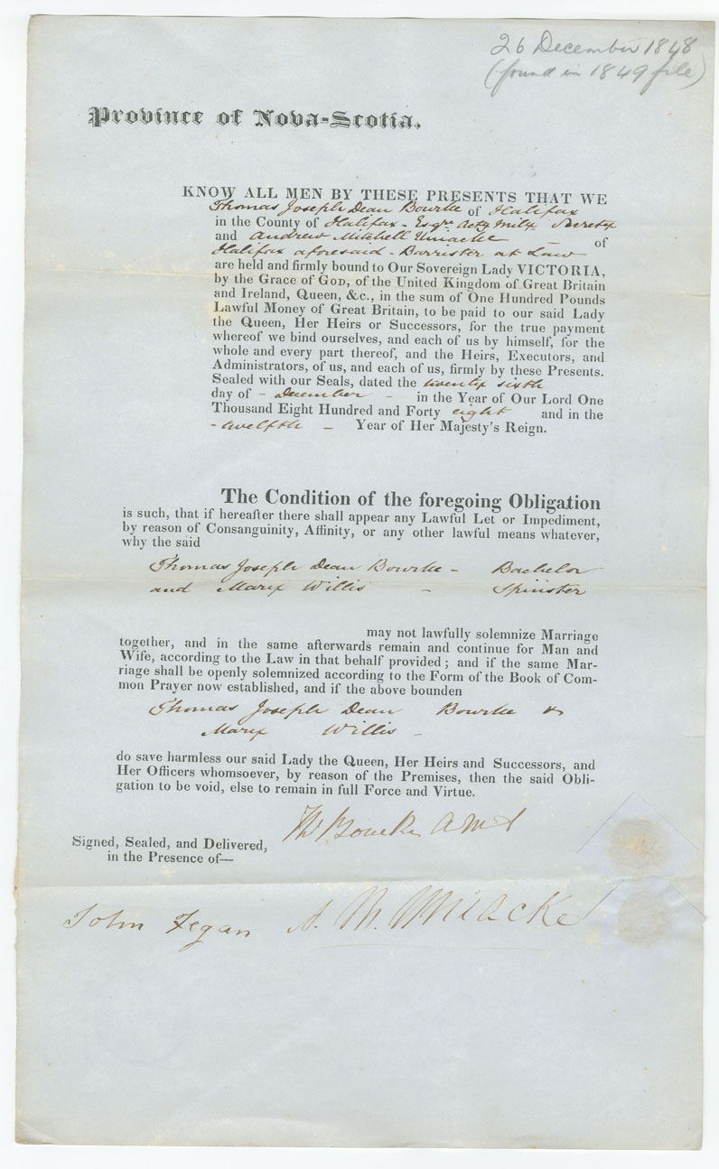 Note: signed by Andrew Mitchell Uniacke, Halifax, barrister-at-law