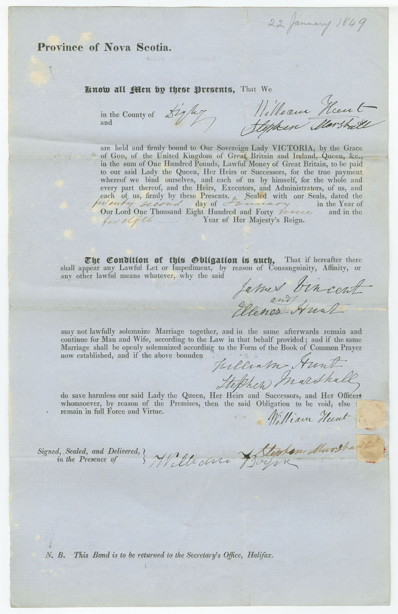 Note: signed by William Hunt, Stephen Marshall and William Boyne