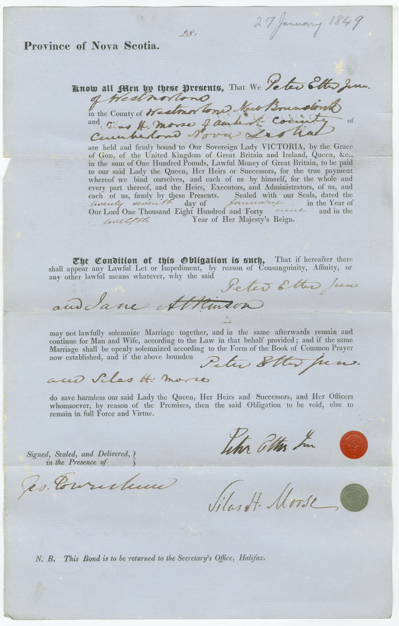 Note: signed by Silas H. Morse, Amherst, Cumberland County, also