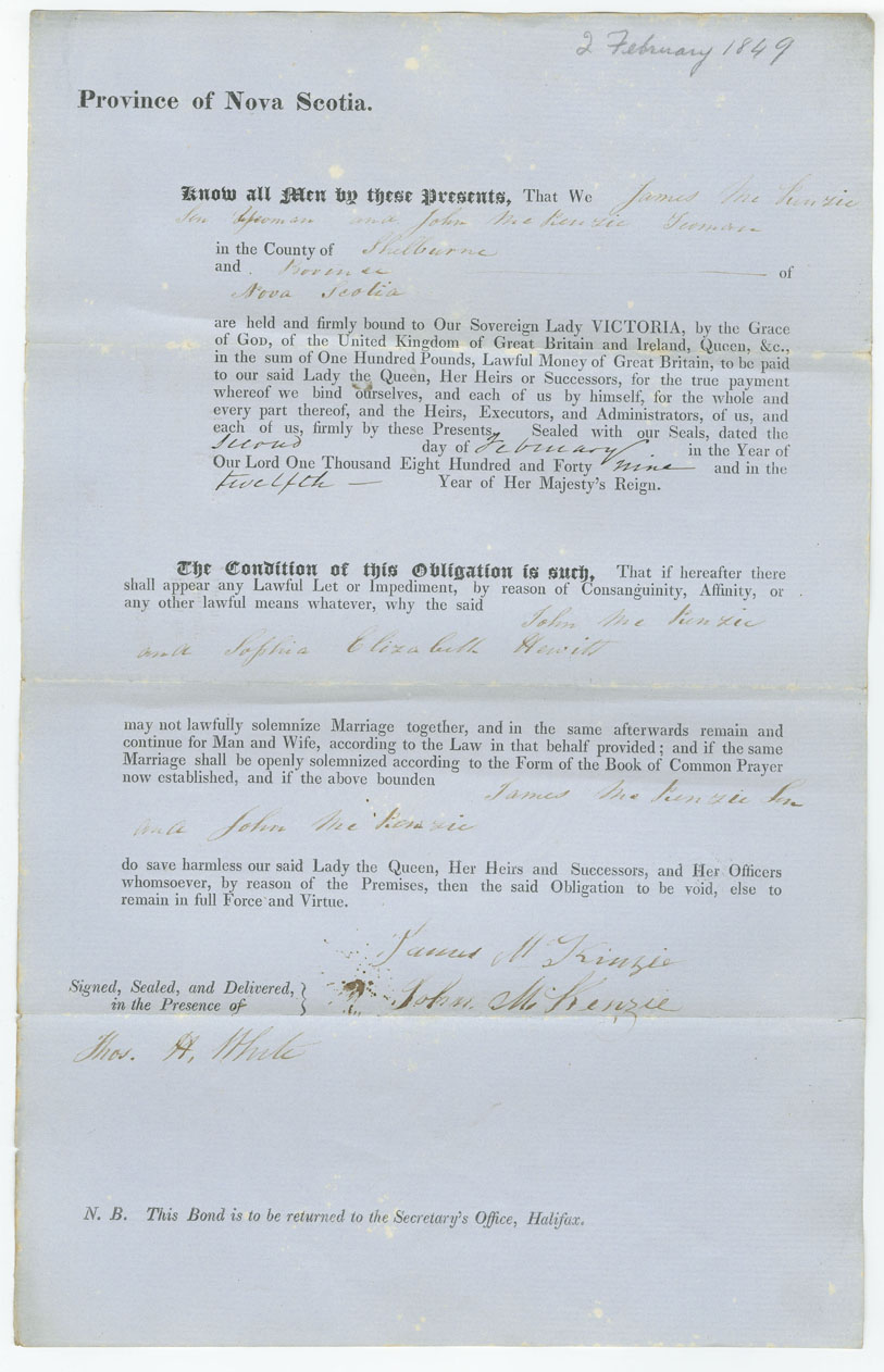 Note: signed by James McKenzie,, Shelburne, yeoman