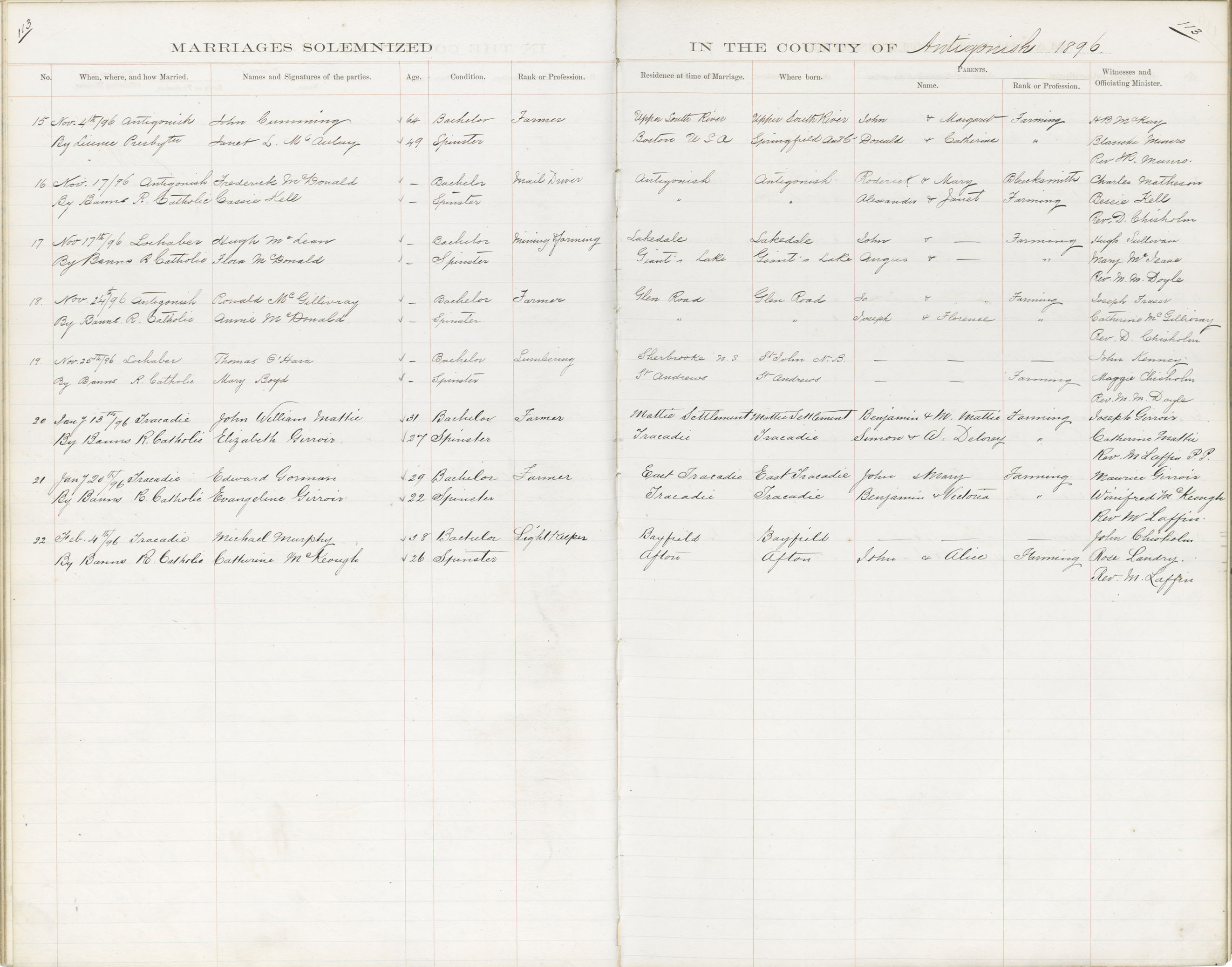 Registration: Year: 1896 book: 1803 page: 113 number: 22
