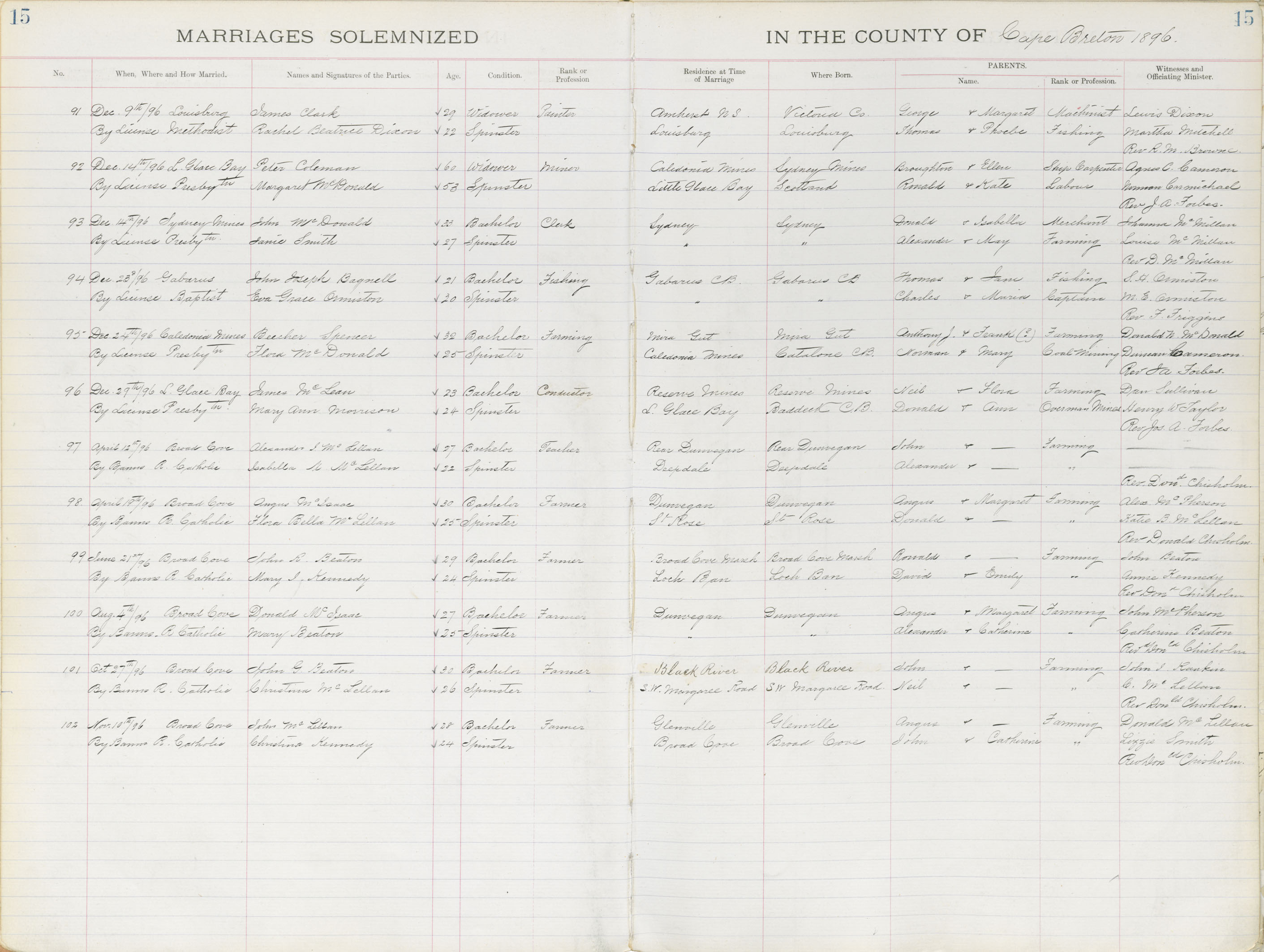 Registration: Year: 1896 book: 1805 page: 15 number: 91