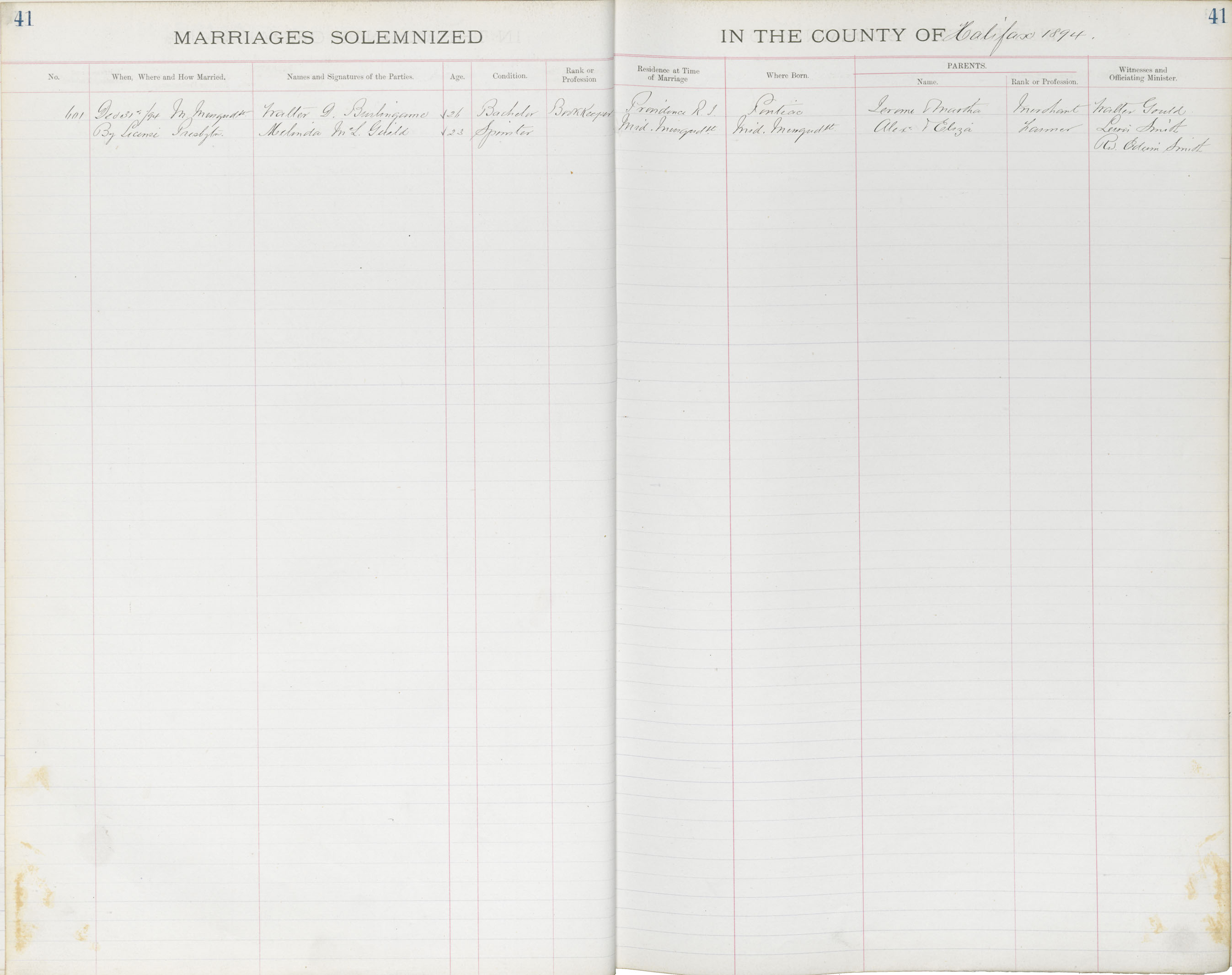 Registration: Year: 1896 book: 1819 page: 41 number: 601