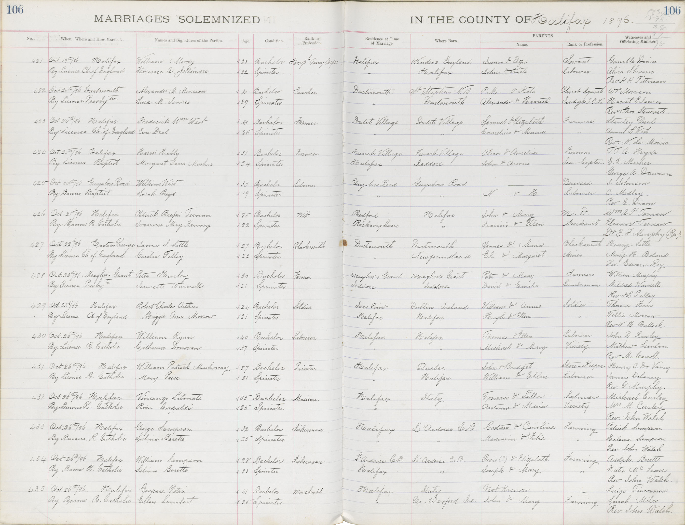 Registration: Year: 1896 book: 1819 page: 106 number: 421