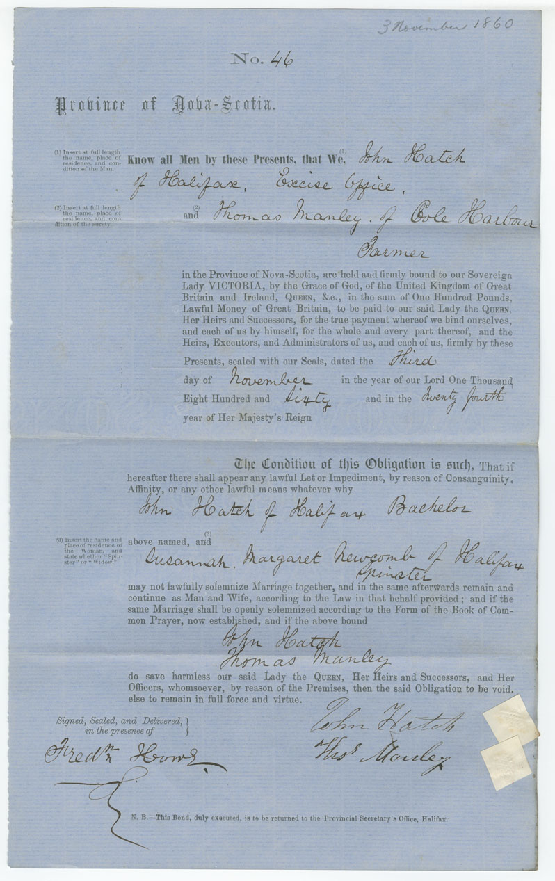 Note: signed by Thomas Manley, Cole Harbour, farmer