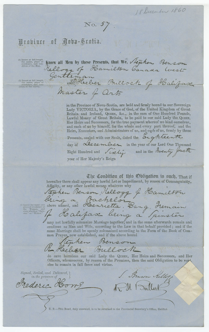 Note: signed by R. Heber Bullock, Halifax, Master, Arts